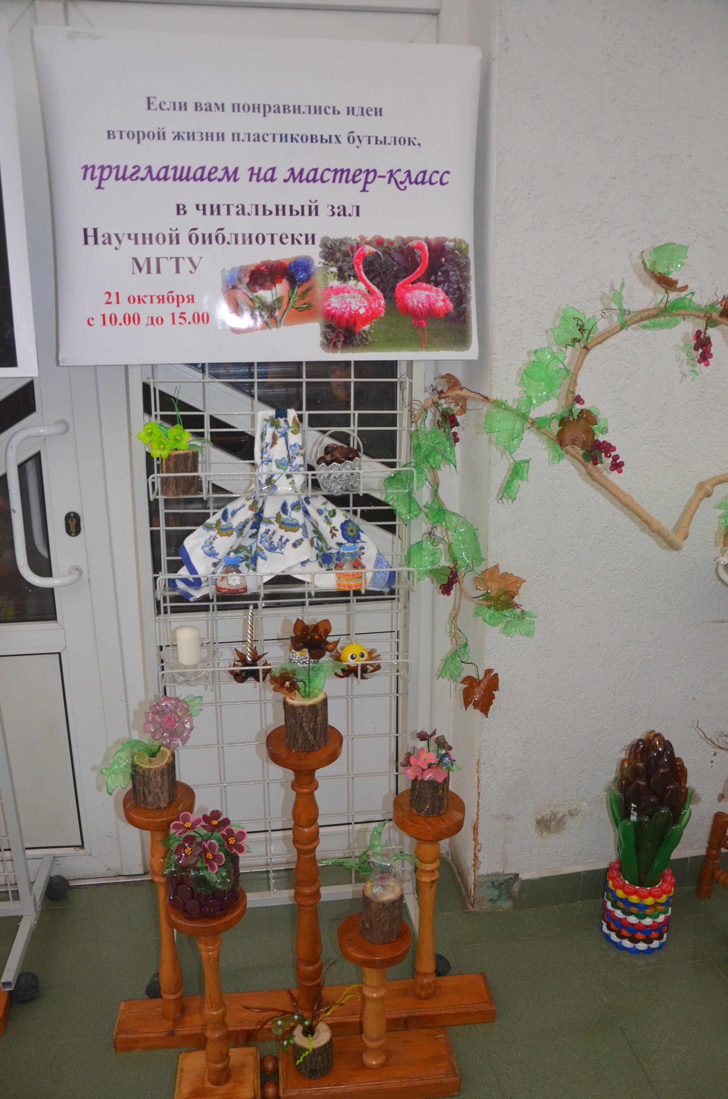 «Полезное из вредного» - таков был девиз инсталляции, представленной сотрудниками Научной библиотеки на V юбилейном фестивале науки МГТУ, который проходил под девизом «Техносфере - Экобудущее». Фламинго и бабочки, розы, ромашки, крокусы и цветущая сакура, виноградная лоза и огромные одуванчики – поражают воображение не только высоким мастерством, но и тем, что выполнены они из старых пластиковых бутылок и прочего пластикового мусора. Поделки мастериц из Научной библиотеки привлекли внимание посетителей всех возрастов. Об успехе мастер-классов говорит то, что просьбы организовать мастер-классы и кружки поступали и от школьных учителей, и от студентов, и от сотрудников университета, и от пенсионеров, посетивших мероприятие. Просмотров: 2740 Назад |