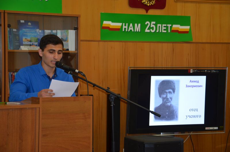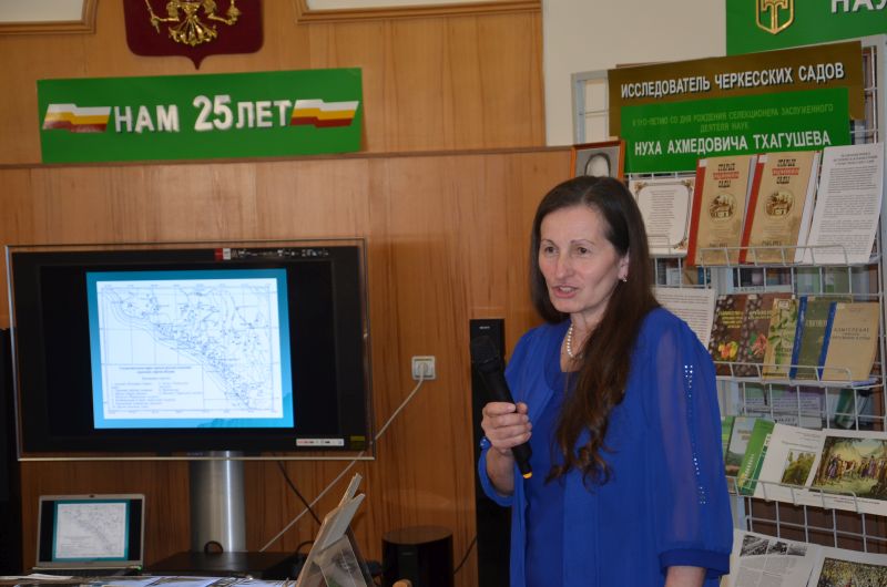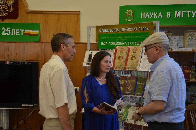 17 мая 2018 в читальном зале Научной библиотеки состоялся Круглый стол «Исследователь Черкесских садов», посвященный 110-летию со дня рождения первого на Черноморском побережье Кавказа и в Адыгее доктора сельскохозяйственных наук, селекционера, профессора, заслуженного деятеля наук РСФСР Нуха Ахмедовича Тхагушева. Обсуждались темы: - жизненный путь Н. А. Тхагушева; - Н. А. Тхагушева как исследователь адыгского агрикультурного наследия; - Черкесские сады как уникальное явление черкесской культуры; - черкесские сады в памяти народов Кавказа; - проблема возрождения культуры черкесского садоводства. Студентами МГТУ и политехнического колледжа прочитаны стихи о Н. Тхагушеве, о старых черкесских садах. Представлены презентации, посвященные жизненному пути Н. А. Тхагушева, возрождению черкесских садов. В мероприятии приняли участие: Тхакушинов Аслан Китович – Государственный советник РА, экс-глава РА, президент МГТУ, доктор социологических наук, профессор, Сухоруких Юрий Иванович – доктор сельскохозяйственных наук, профессор, декан экологического ф-та, Бандурко Ирина Анатольевна – доктор сельскохозяйственных наук, профессор кафедры технологии производства сельскохозяйственной продукции, Чемсо Газий Кушукович – Исполнительный директор Фонда содействия сохранению историко-культурного наследия "НАСЛЕДИЕ", Шхапацев Аслан Капланович – кандидат сельскохозяйственных наук, декан факультета аграрных технологий, Кудаева Нурет Айсовна – преподаватель политехнического колледжа. Хотко Самир Хамидович – доктор исторических наук, ведущий научный сотрудник отдела этнологии и народного искусства АРИГИ, Емиж Мулиат Ибрагимовна – член Союза писателей России и Союза театральных деятелей России, тележурналист, Костанова Фатима Алиевна – преподаватель политехнического колледжа, Апухтина Елена Михайловна заместитель декана экологического ф-та по научной работе, кандидат сельскохозяйственных наук, доцент, и другие. Просмотров: 2885 Назад |
