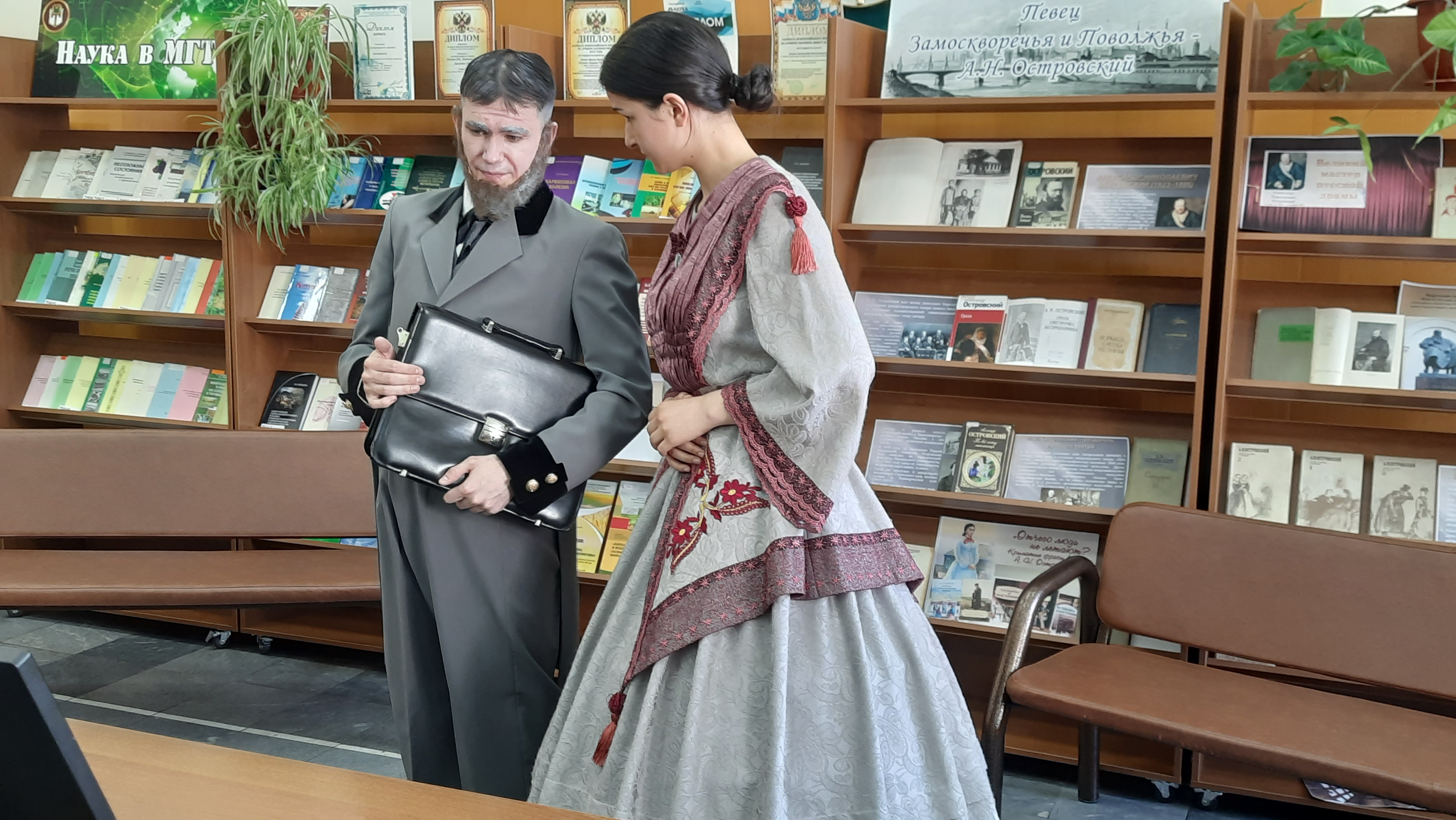 🎭Сегодня для всех, кто пришел в наш читальный зал, состоялось увлекательнейшее путешествие в Замоскворечье середины XIX века и… знакомство с героями пьес Александра Николаевича Островского.